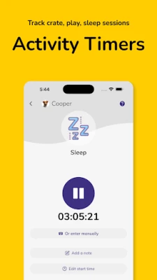 - Activity timer for play sessions, training, and sleep
