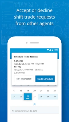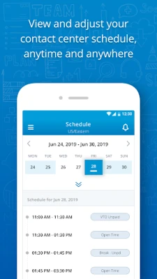 Use the NICE EEM mobile app as a personal assistant for your contact center scheduling needs. View your hours and shifts with precision, anytime and anywhere, whether in the contact center or "on the go" outside.