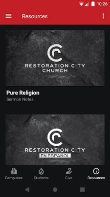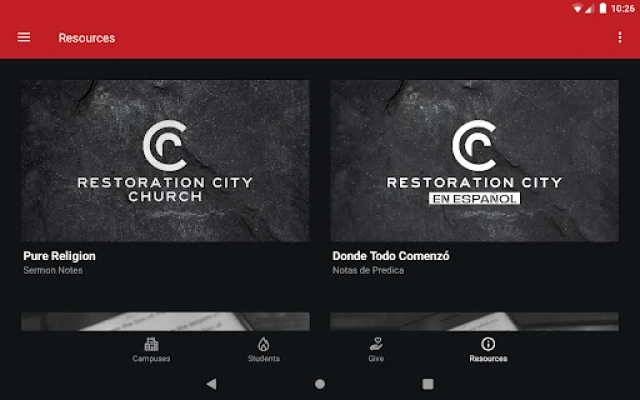 The Restoration City Church app was developed with the Subsplash App Platform.